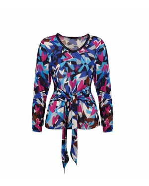 Блуза от район, с дълъг ръкав, V-деколте, с вграден текстилен колан за допълнително дефиниране на талията, с мотив стилизирани сърца