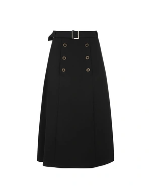 Пола с класическа кройка с А-силует, висока талия, подчертана с текстилен колан с катарама и двуредно декоративно закопчаване