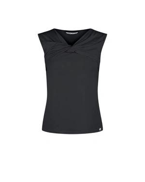 ЧЕРНА ТЕНИСКА ОТ ВИСКОЗА С УСУКАН ДЕТАЙЛ НА ДЕКОЛТЕТО