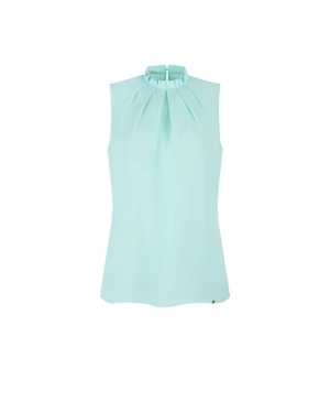 ЕЛЕГАНТНА МЕНТОВА БЛУЗА С ВИСОКА ЯКА БЕЗ РЪКАВ