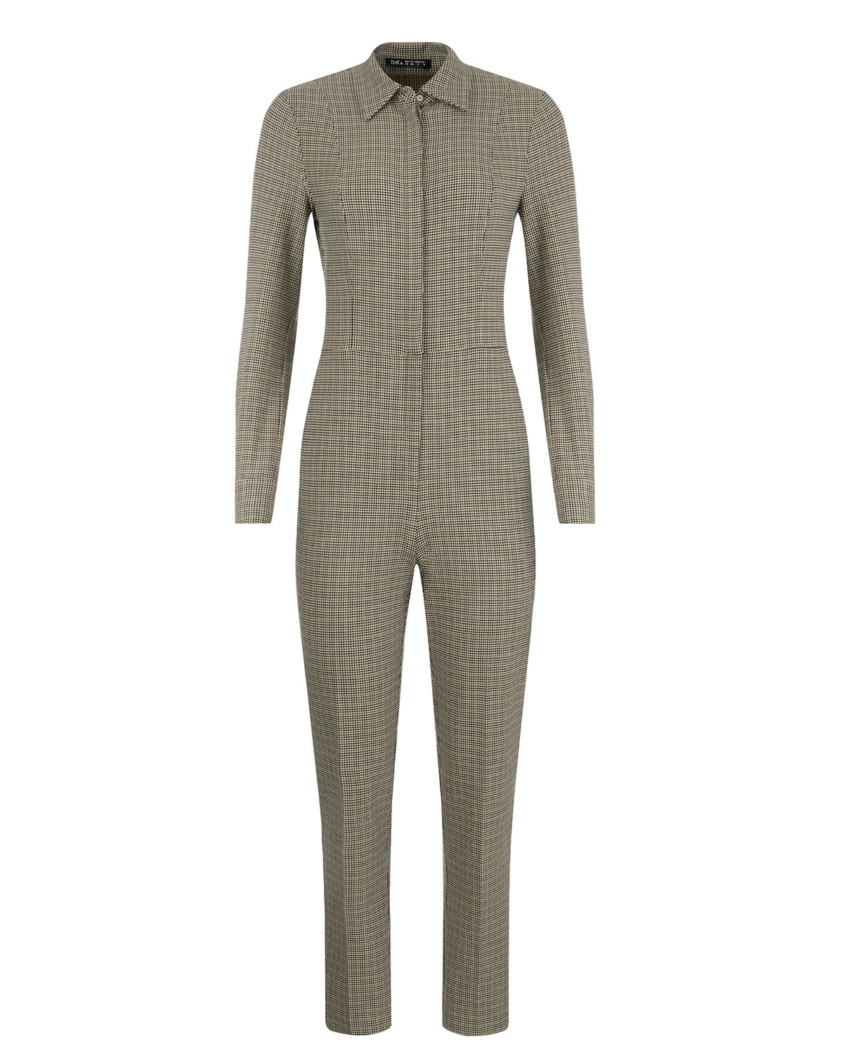 Модел с дълъг ръкав, фронтално закопчаване, с якичка, с конусовиден крачол с ръб