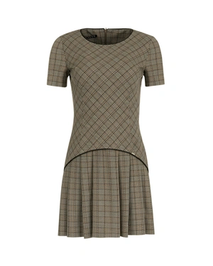 Модел с къс ръкав, обло деколте, нормално вталяване, с долна част с волан от плохи, дължина над коляното, с рециклиран полиестер, роклята е с подплата