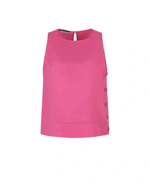 ЛЕНЕНА БЛУЗА БЕЗ РЪКАВ В ЦВЯТ ФУКСИЯ СЪС СТРАНИЧНИ ДЕКОРАТИВНИ КОПЧЕТА