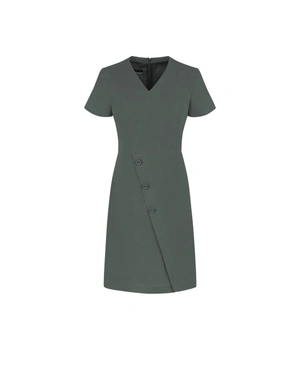 Рокля от 100% висококачествен лен с подплата от чиста вискоза. V-образното деколте и естествената материя осигуряват несравним комфорт в горещите дни, асиметричните копчета в долната част разчупват този класически летен модел.