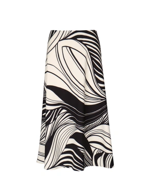 МИДИ ПОЛА СЪС СТИЛИЗИРАН ПРИНТ В ЧЕРНО И ЕКРЮ