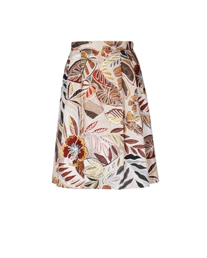 Женствена миди пола от 100% памук, открояваща се с богат флорален десен. Високата талия и свободният силует я правят идеална за комбинация с изчистен топ.