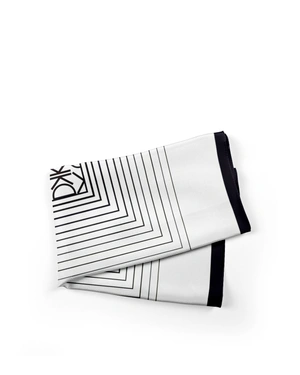 ШАЛ ТИП КАРЕ С ГЕОМЕТРИЧЕН ЧЕРНО-БЯЛ ПРИНТ И СТИЛИЗИРАНО ЛОГО
