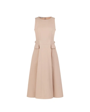 Модел с вталена горна част с обло деколте и без ръкави и разкроена долна, талията е подчертана от кройката и има ефектни декоративни джобове с капаци, материята е 100% памук.