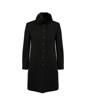 Вталено едноредно вълнено палто, с висока яка от изкуствена кожа с косъм, с подплата