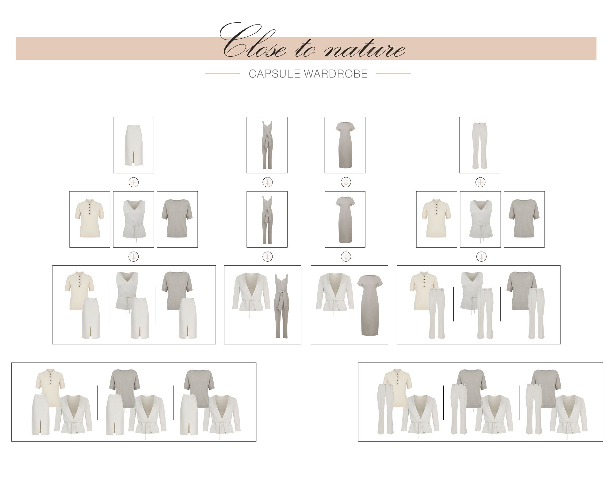 The collection includes 8 key pieces. Thanks to the unified color palette and silhouettes, each item can be combined with the others.