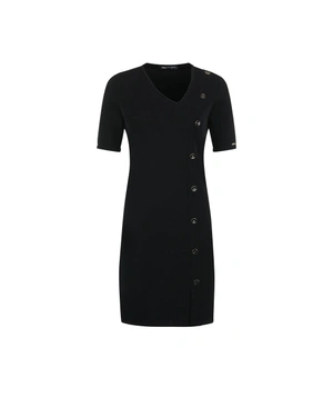 BLACK KNIT DRESS WITH V-NECKLINE AND DECORATIVE BUTTONS