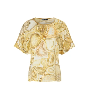 BLOUSE MADE OF RAYON AND LINEN WITH A STYLIZED MOTIF IN BEIGE TONES