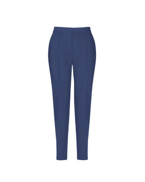Trousers in deep dark blue, with crease and tapered leg, offering comfort and clean lines, suitable for dynamic urban style.