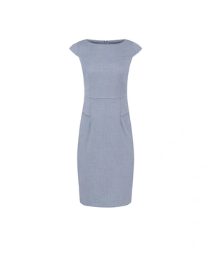 ELEGANT BUSINESS DRESS, MIDI LENGTH, IN GREY-BLUE