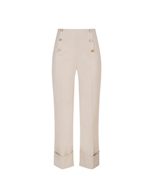 LIGHT BEIGE STRAIGHT-LEG TROUSERS WITH CUFFS AND GOLD BUTTONS
