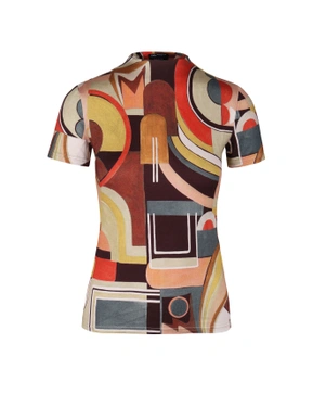 Short sleeve regular fit viscose fine jersey blouse abstract print silk blend fabric elasticity