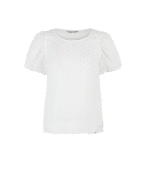 WHITE BLOUSE WITH TEXTURED FABRIC AND SHORT PUFF SLEEVES